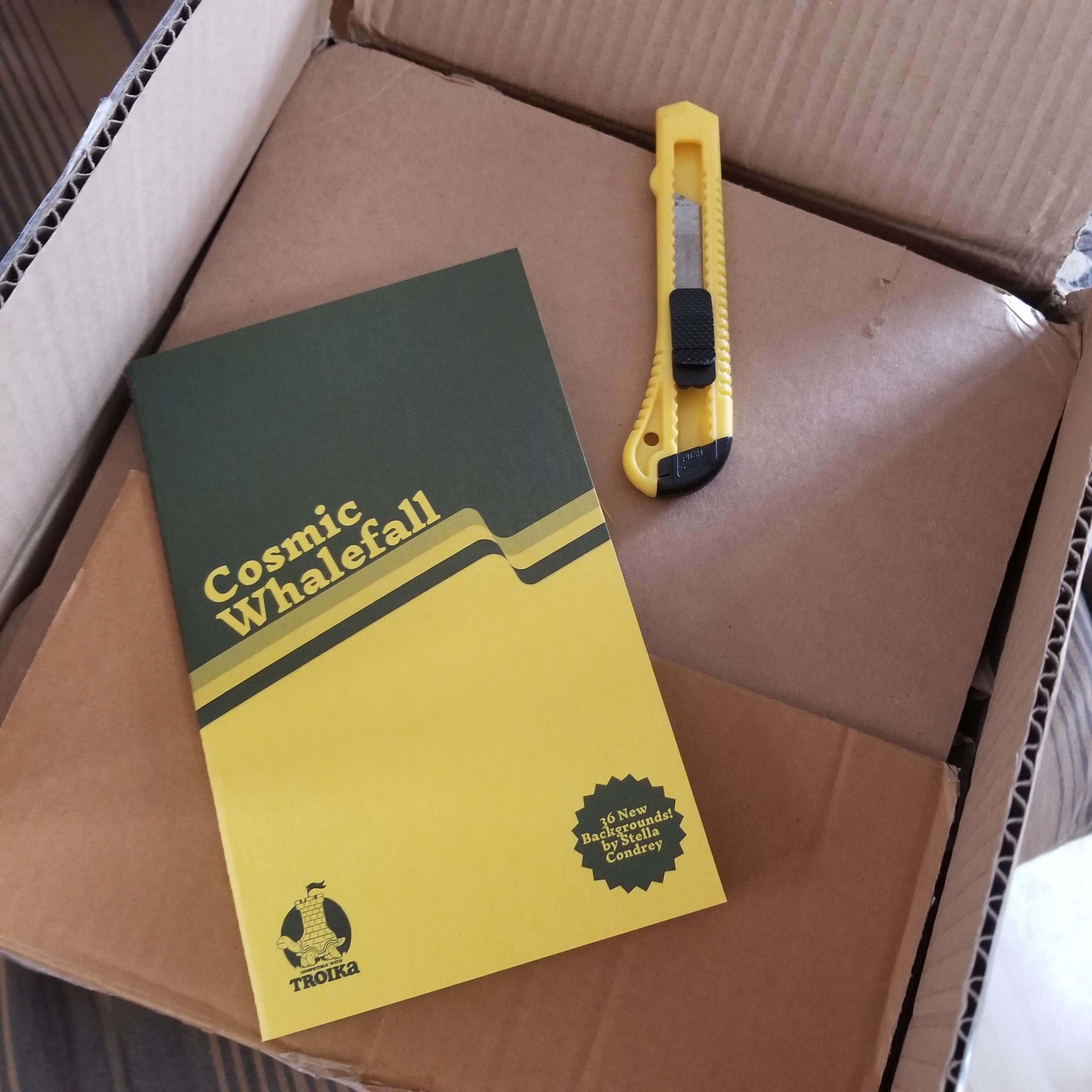 I recently got copies of an LF OSR print run of my old troika zine Cosmic Whalefall. Soon these will be available for purchase, from various retailers but I thought I might as well announce them now, considering they have been out of print for a while.
